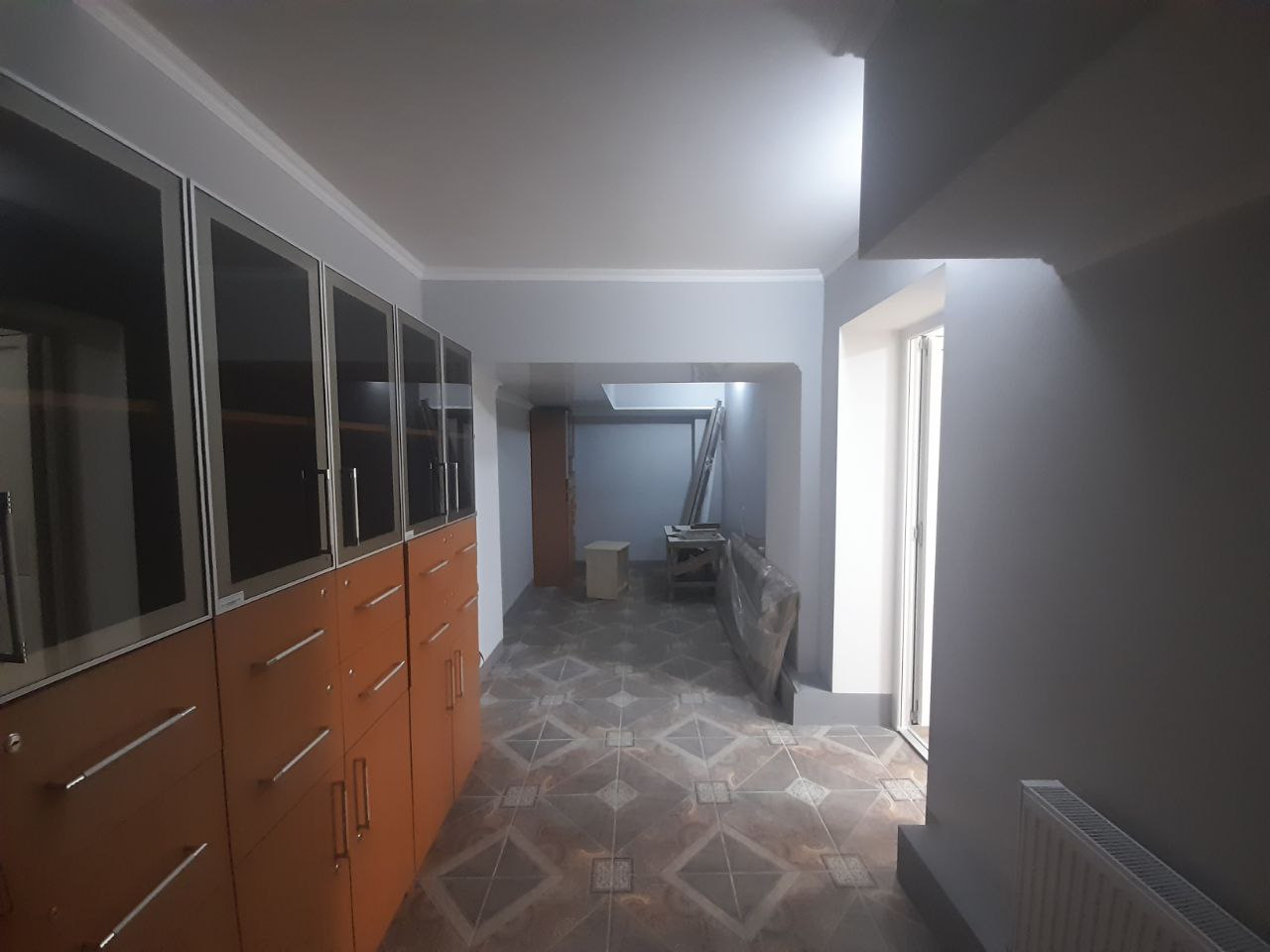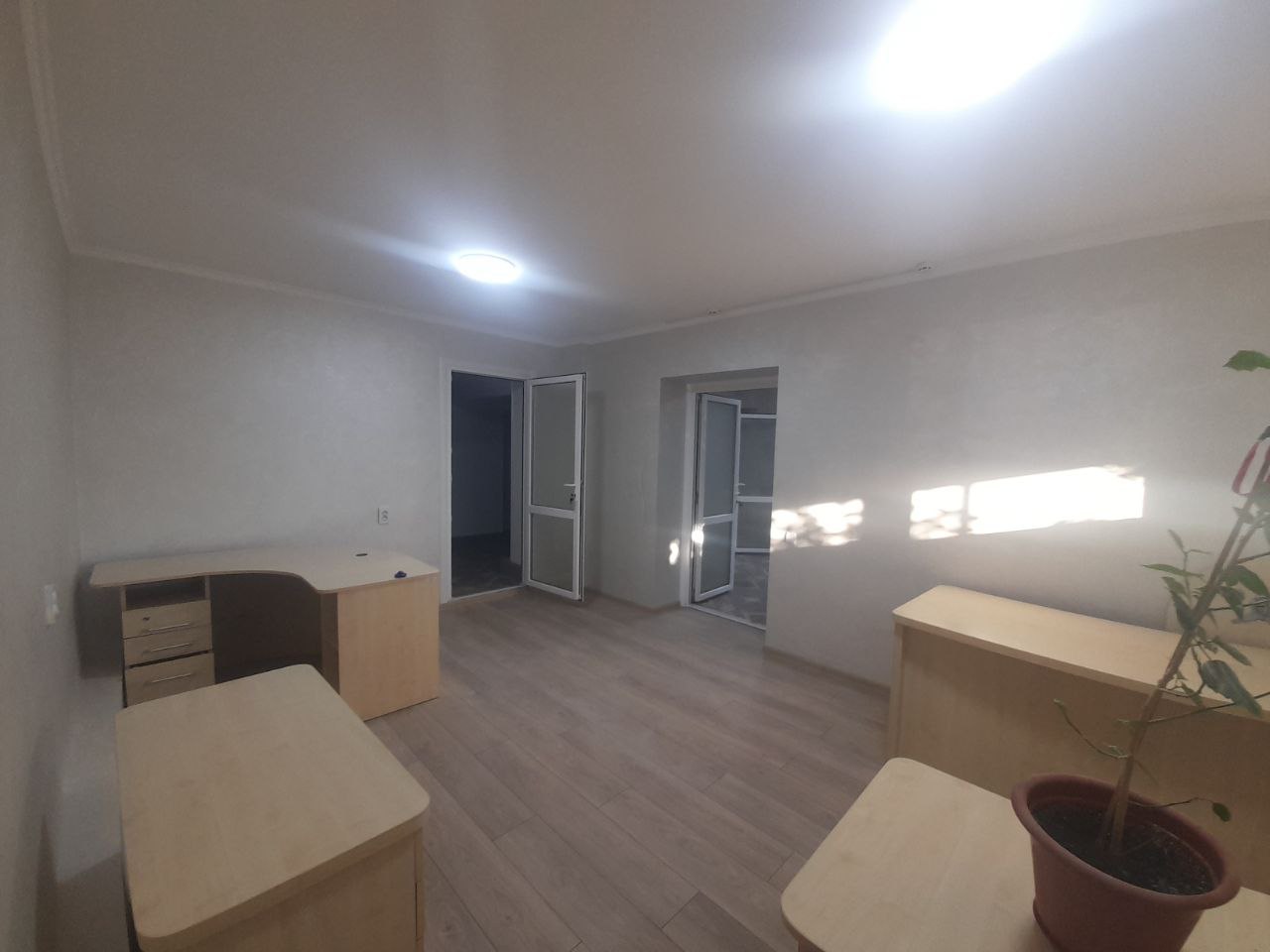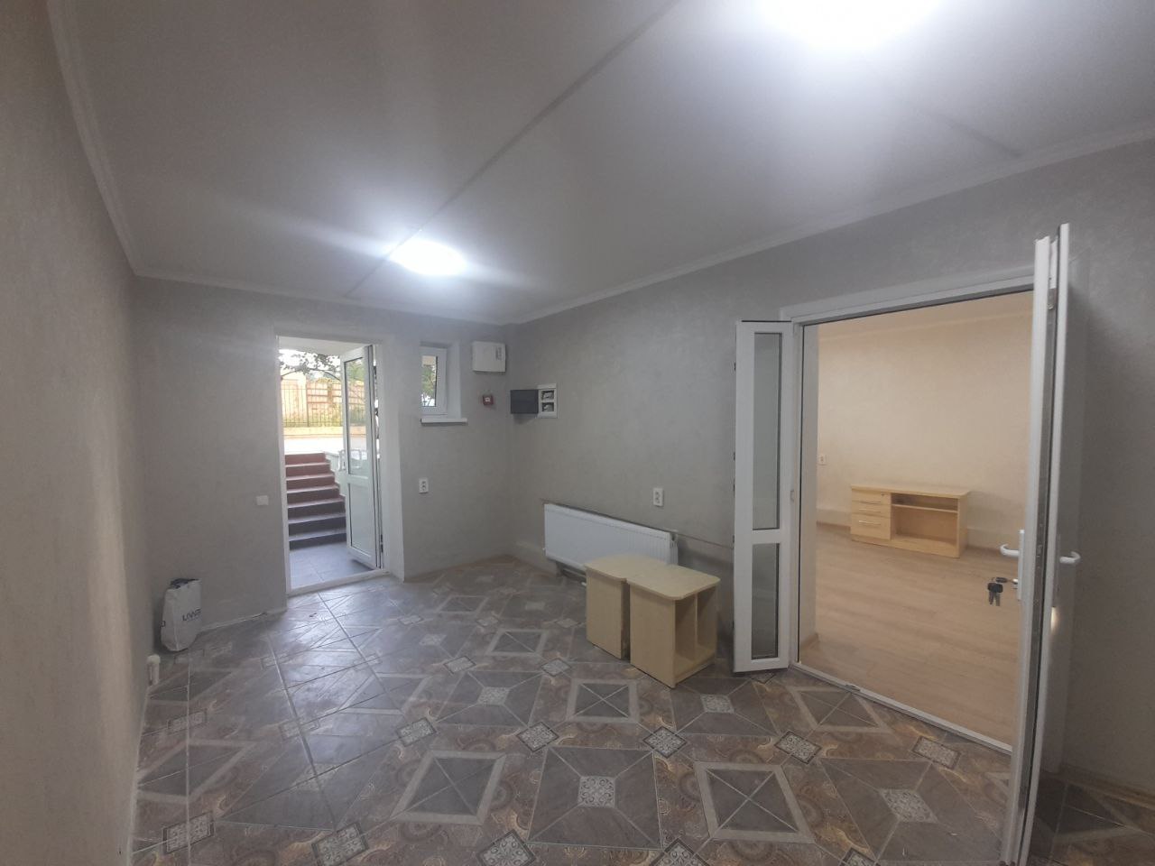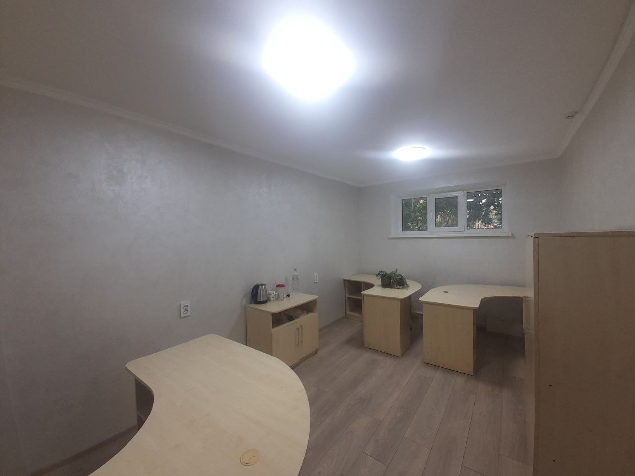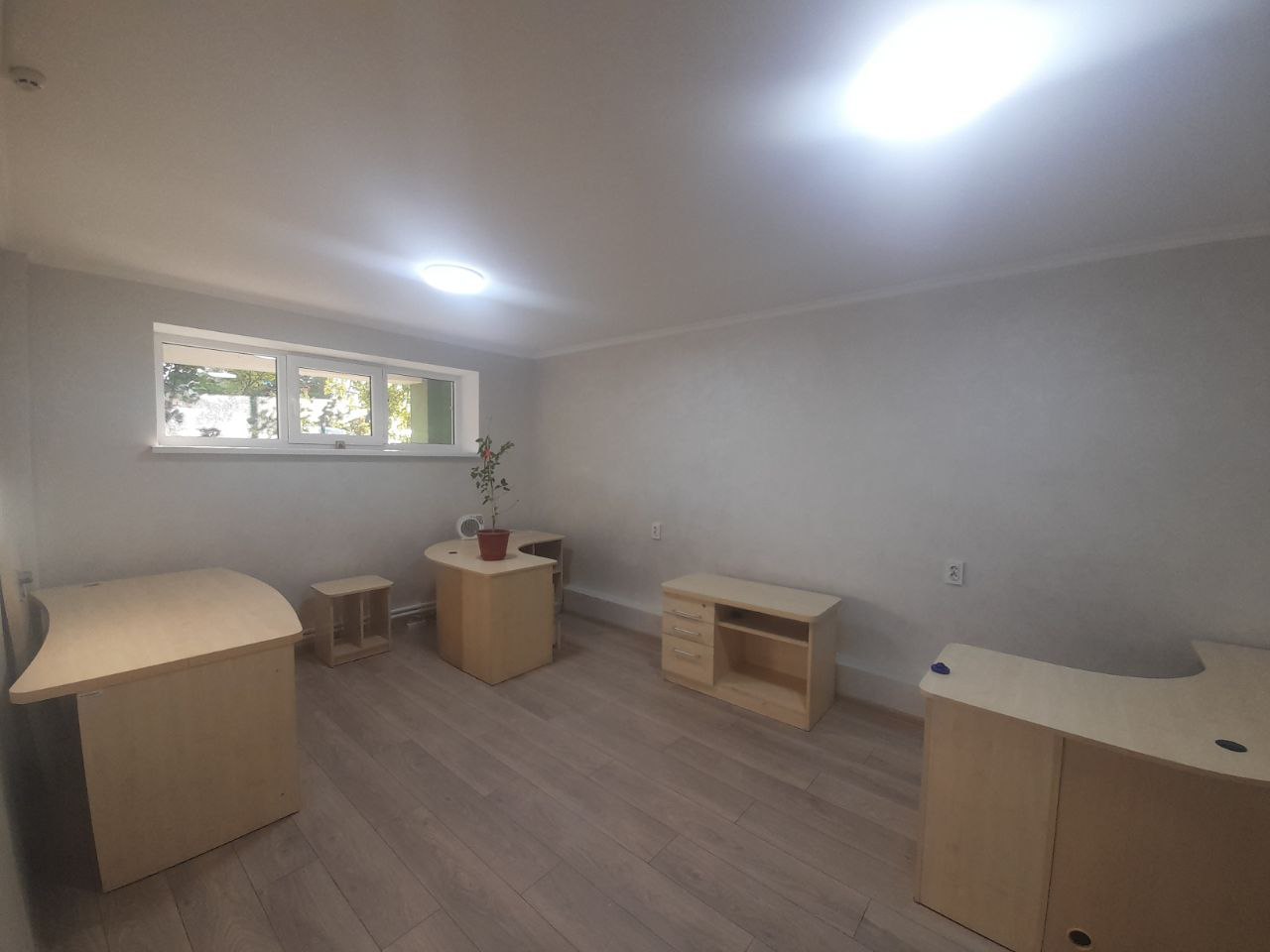 Общая площадь 74 метра, состоит из приёмной, двух отдельных кабинетов, санузла, кухни и коридора. Есть дополнительный выход через подъезд, основной вход с улицы. Из коммуникаций: свет, вода и канализация, пожарная сигнализация. Система отопления подготовлена для электрического котла, при желании можно также установить кондиционер. Сдаётся на длительный срок от года, предоплата за первый и последний месяца. Цена 400 евро.