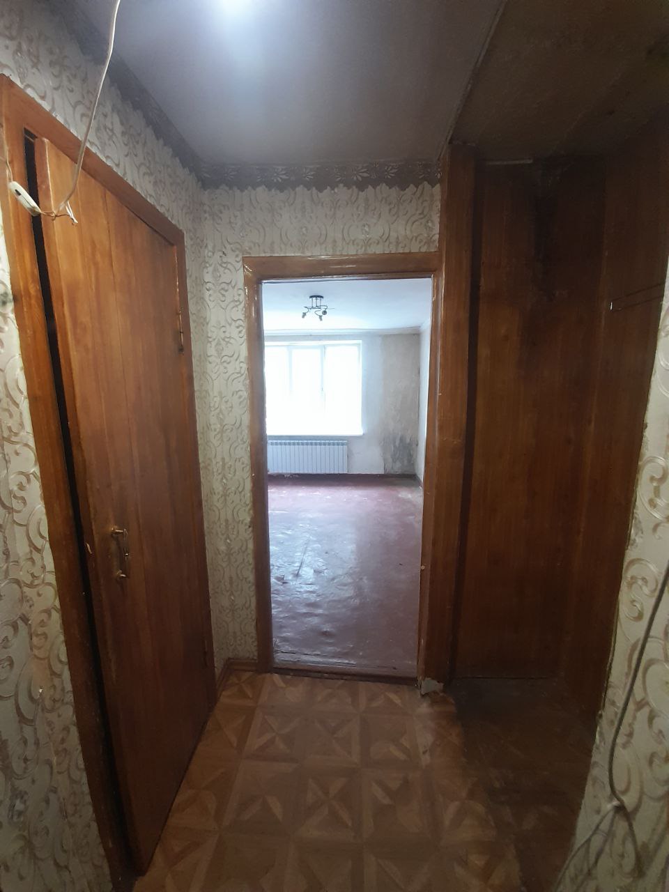 Квартира находится в бывшем общежитии, имеет 18 метров, есть санузел и место под душ кабину. Располагается в середине дома. Центральное отопление, вблизи есть магазин, парк, остановки общественного транспорта в любое направление. Цена 13500 евро, разумный торг при осмотре.
