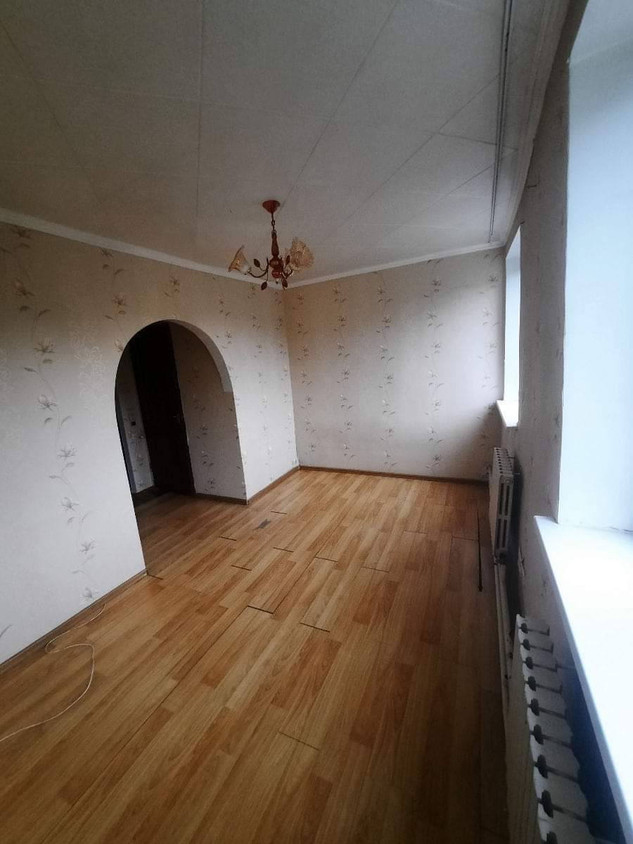 Есть небольшая кухня, совмещенный туалет и душевая, а также коридор и светлая комната без балкона. Дом отапливается центральным отоплением.